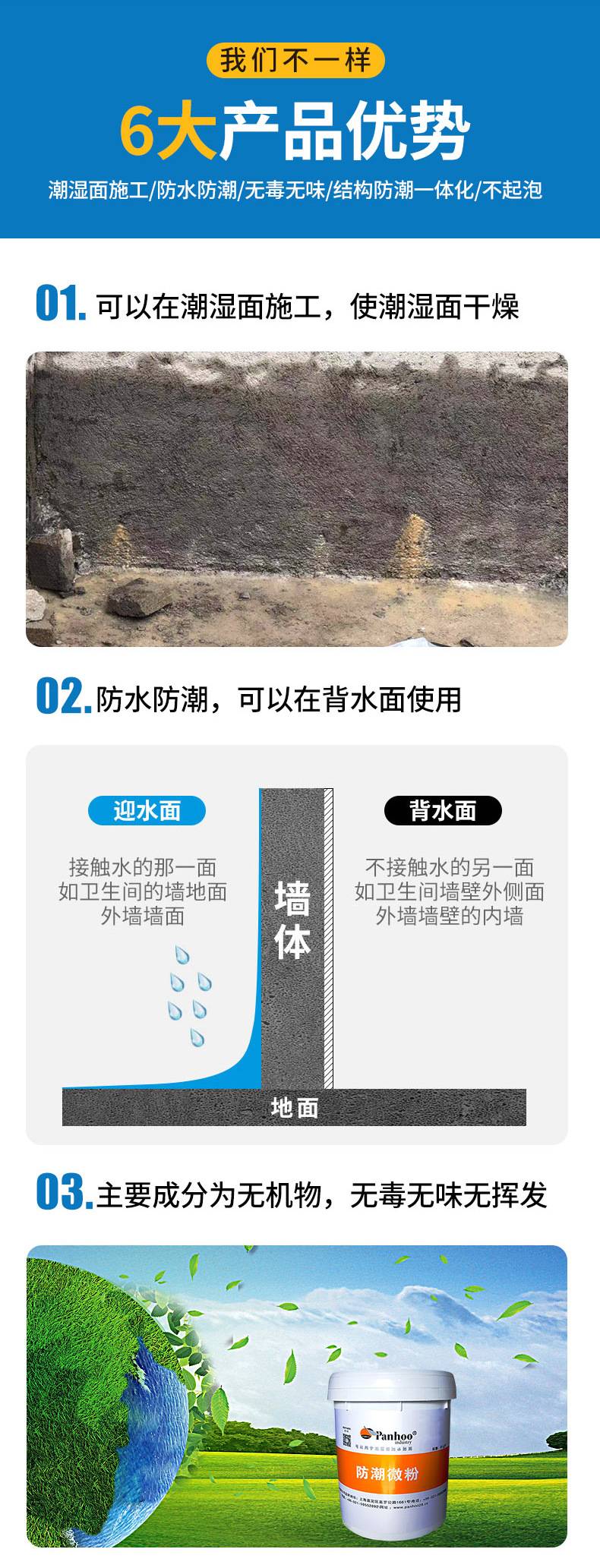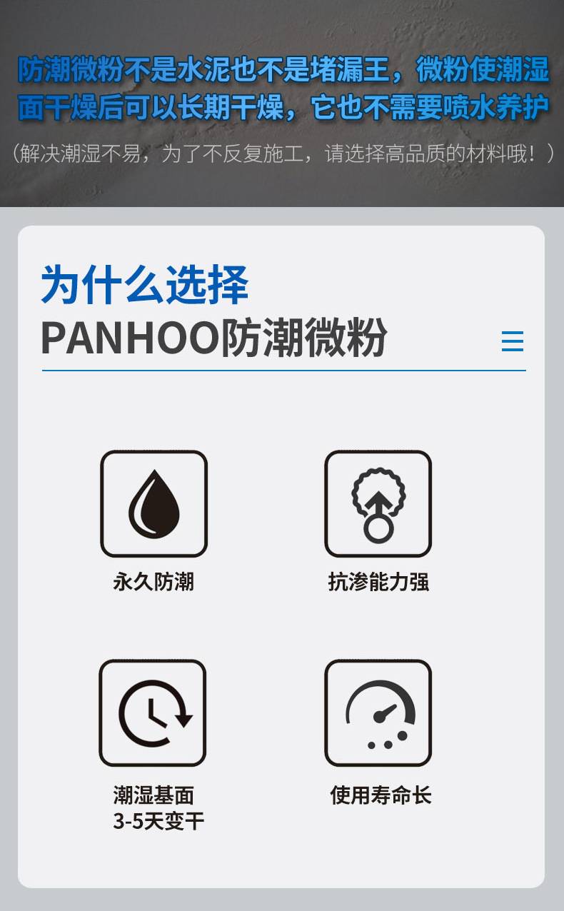 panhoo防潮微粉地下室地面潮湿防水材料别墅一楼水泥墙面补漏涂料