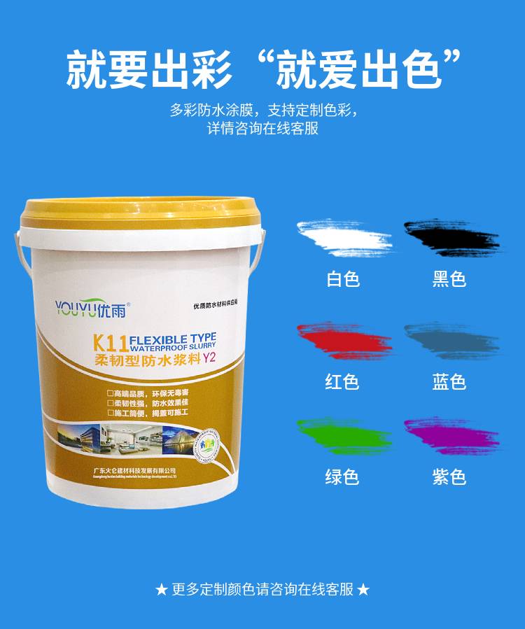 K11柔韧型防水涂料 蓝色绿色 厨房卫生间阳台墙地面用 水性环保涂料