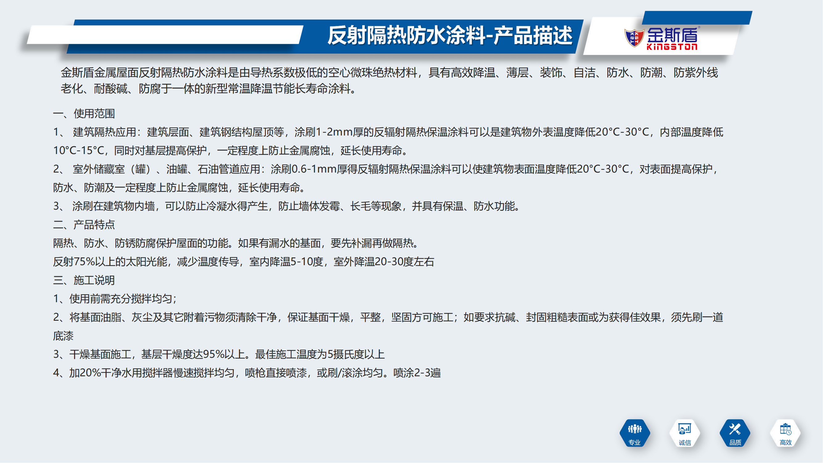 金斯盾反射隔热防水涂料 白色铁皮水泥墙地面降温 防晒油漆防水厂家