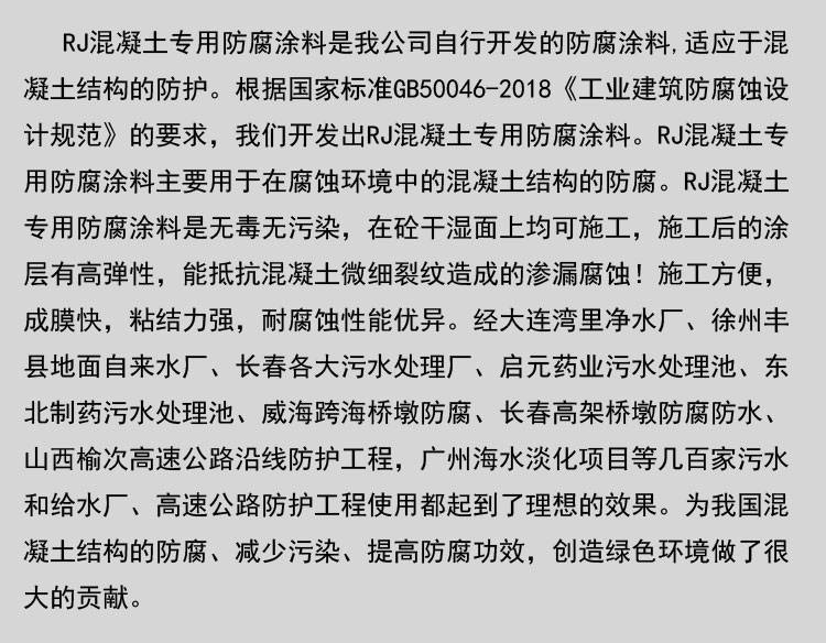 RJ混凝土专用防腐防水涂料 绿色环保 抗渗透 主要用于墙面地面