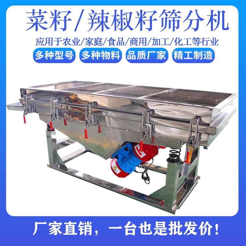 菜籽筛选机对各类菜籽进行大小颗粒筛分,或者筛除里面杂质的设备。根据不同筛分需求可以选用直线筛或者旋振筛。