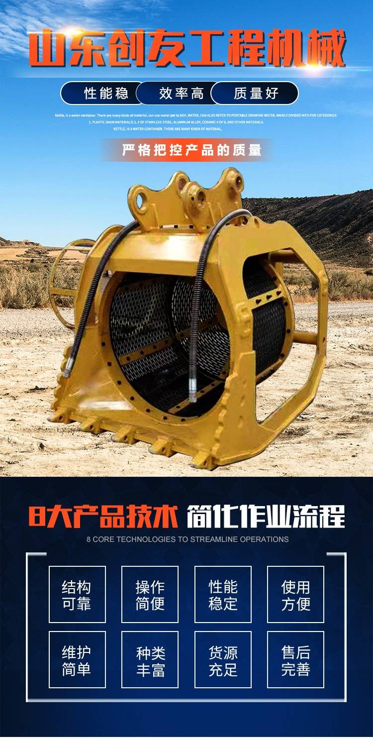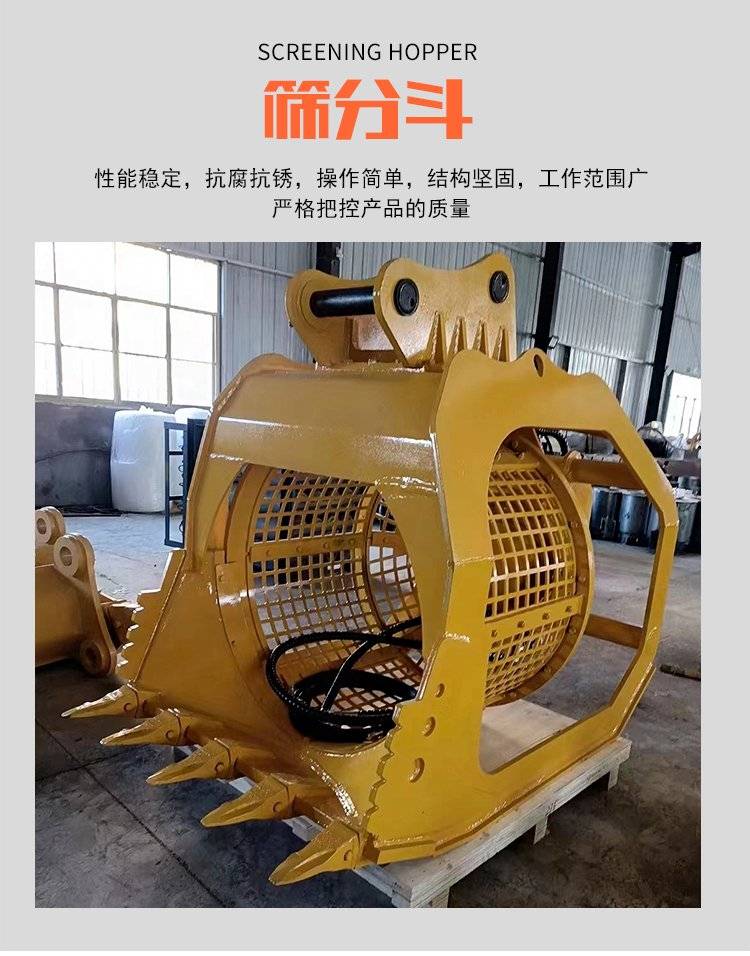 挖机用1.5方筛分斗 可旋转式震动清筛机 滚筒筛斗