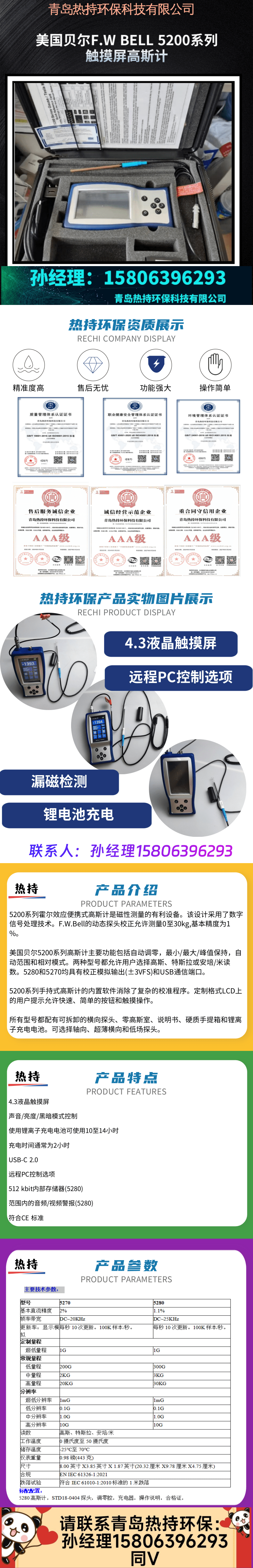 美国贝尔数字便携式高斯计5280特斯拉计场强仪漏磁检测磁场5180