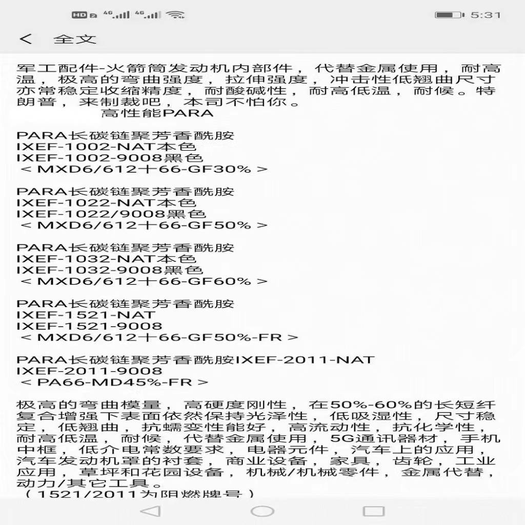 代理美国苏威 索尔维 MXD6 IXEF PARA FC-1022 BK001 食品级聚芳香酰胺