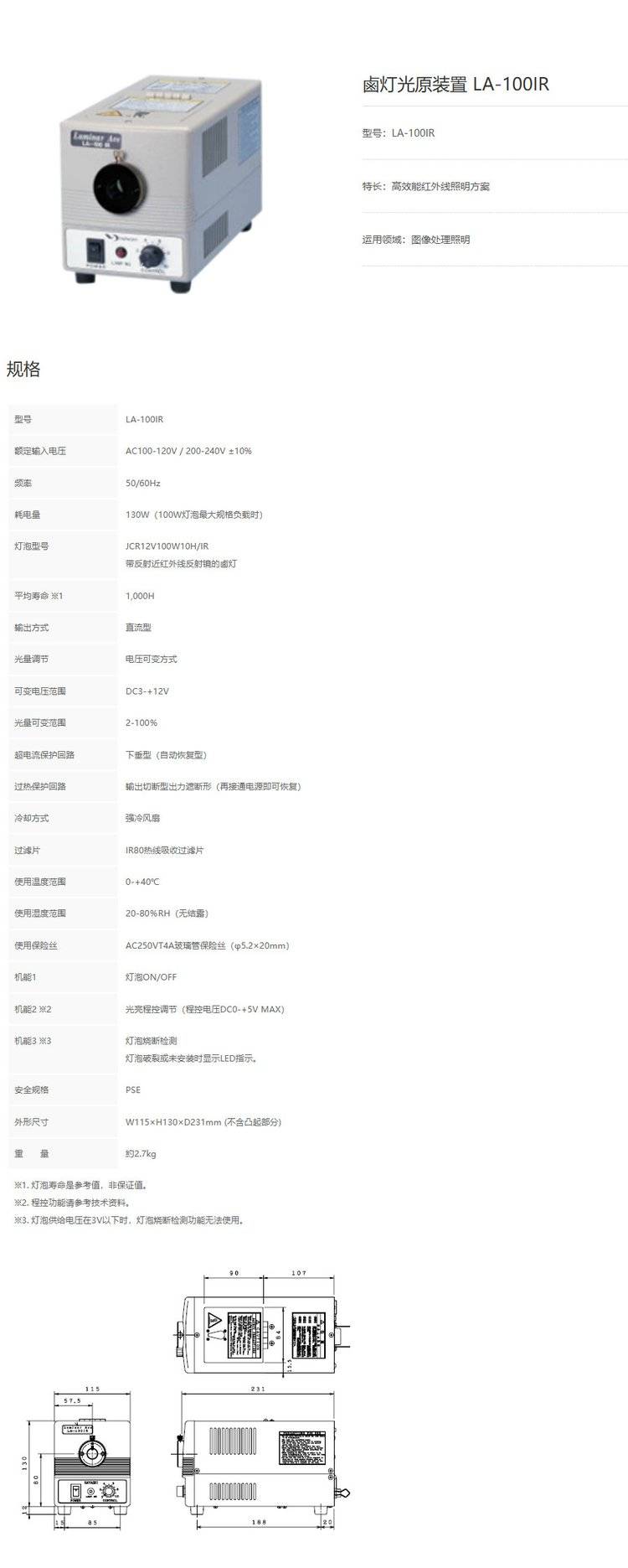 日本进口现货 近红外线照射装置 LA-100IR HAYASHI-REPIC 卤素灯