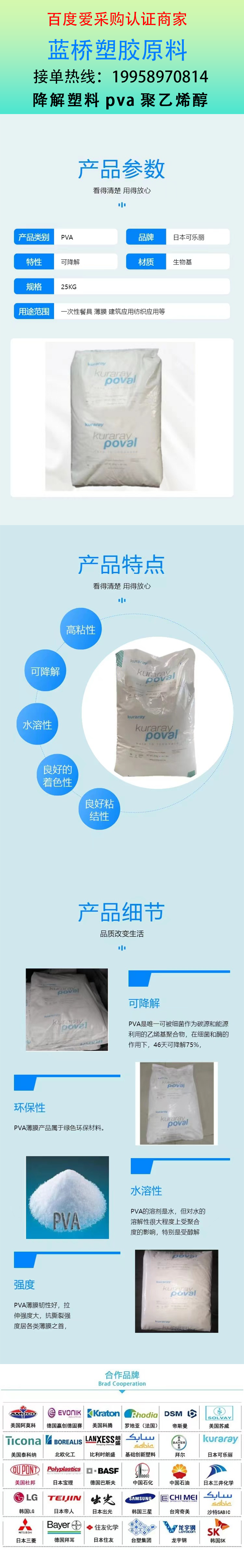 PVA 日本可乐丽 3-98 铝箔涂料应用 高粘性 耐油性 着色性好 降解塑料