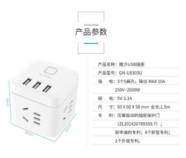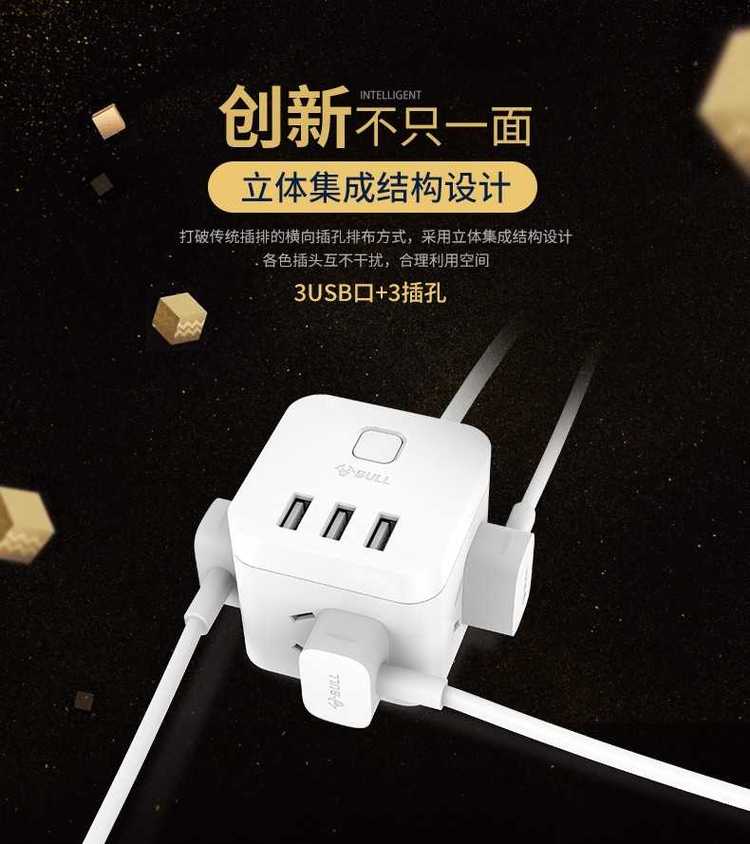 公牛 一体魔方插座 U8303U 雅物小礼品企业 MY-ACJJ-(T)-225