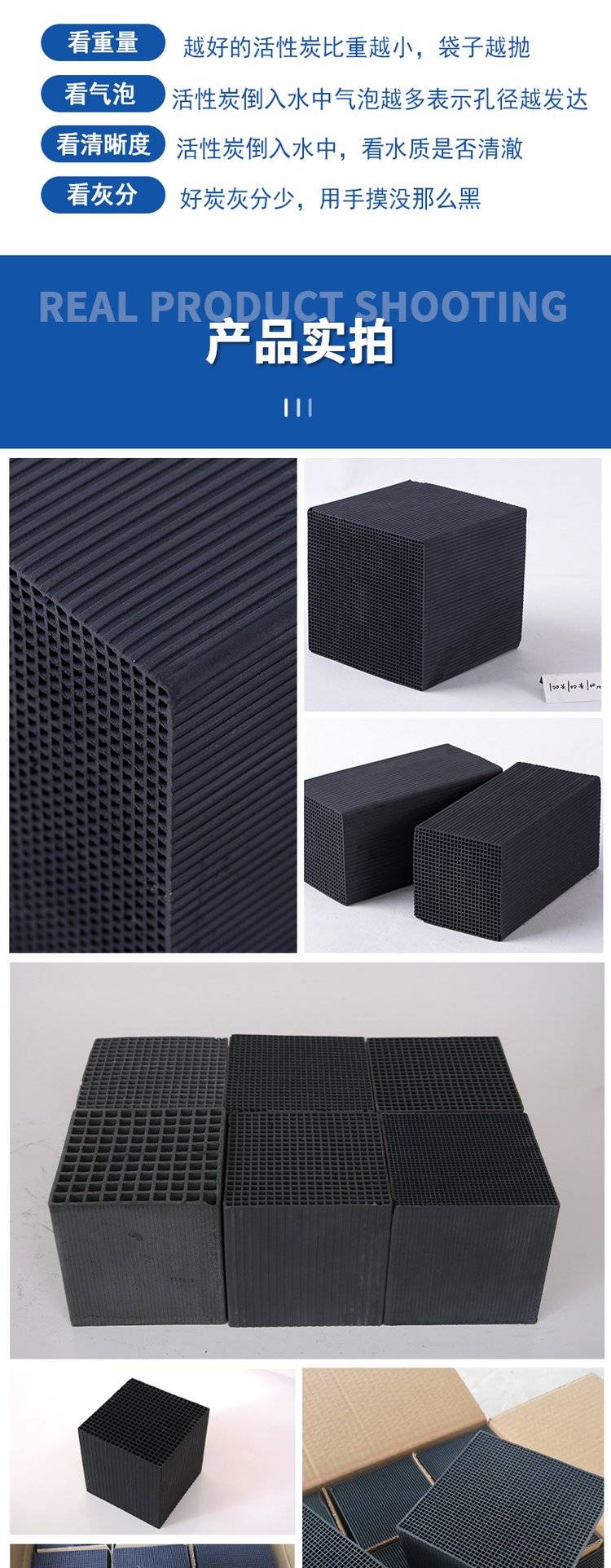 蜂窝活性炭黑色方块鱼缸过滤吸附异味净水魔方水产养殖原厂直供