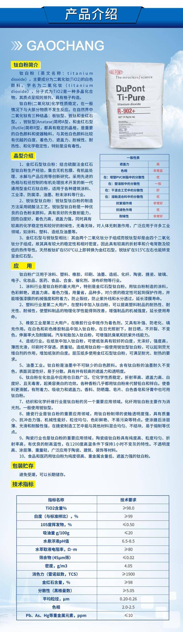 美国科慕杜邦R902+金红石型钛白粉涂料塑料902高光泽易分散