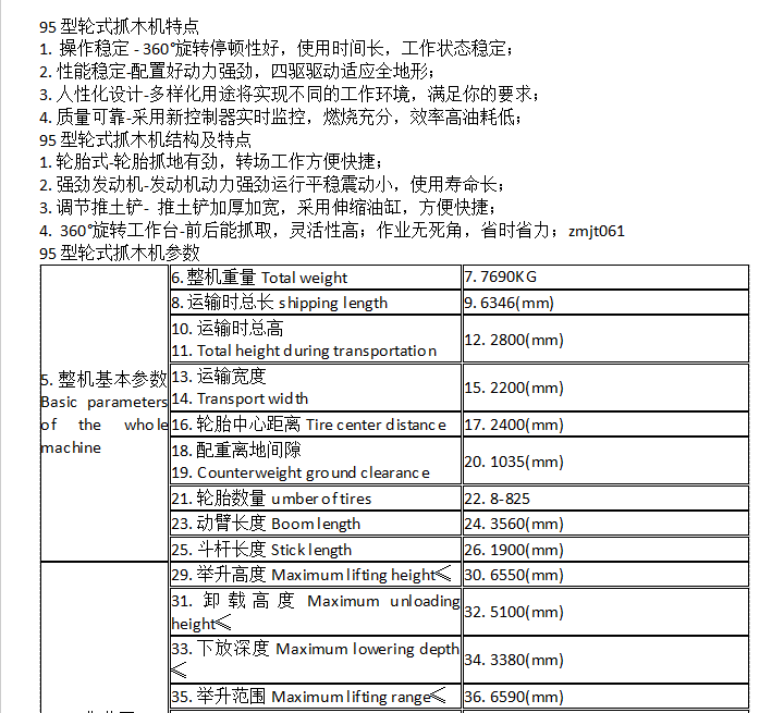 95型轮式抓木机 操作稳定 360°旋转停顿性好 使用时间长