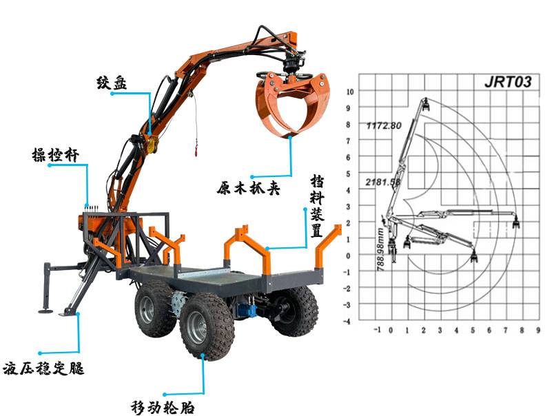 原木拖车厂家批发抓木机带遥控木材装卸机多功能抓圆木随车抓木 机
