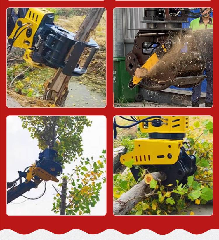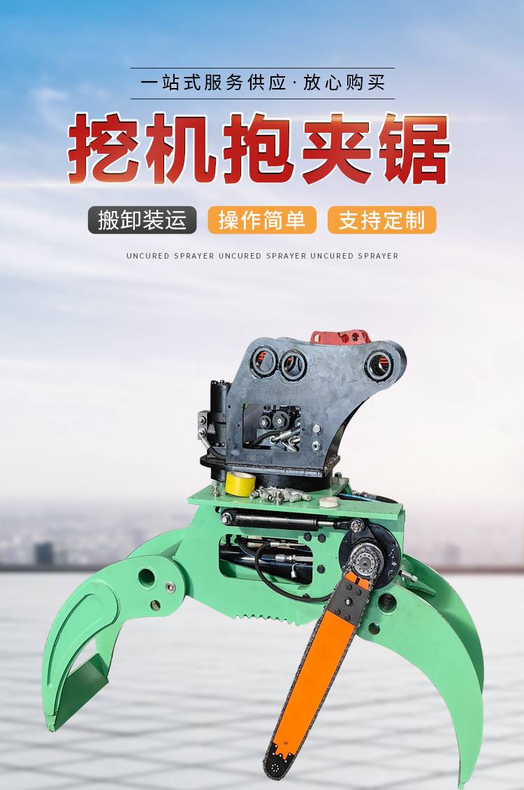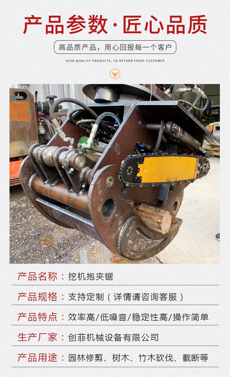 挖掘机抱夹伐木锯 创菲抓木伐木一体锯 林业采伐机 夹伐一体伐木机