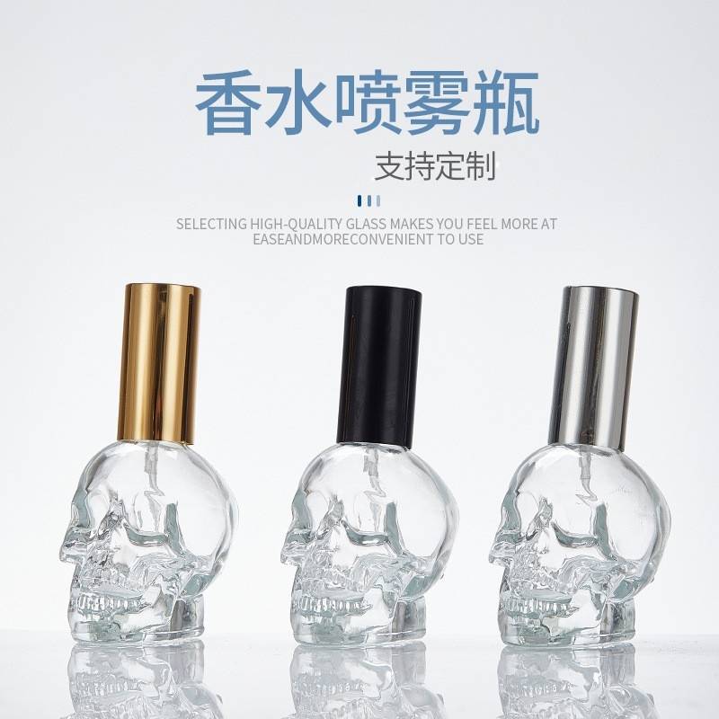 瑞宁50ml异形骷髅头香水喷雾瓶便携化妆品精油瓶玻璃香水分装空瓶