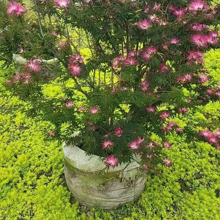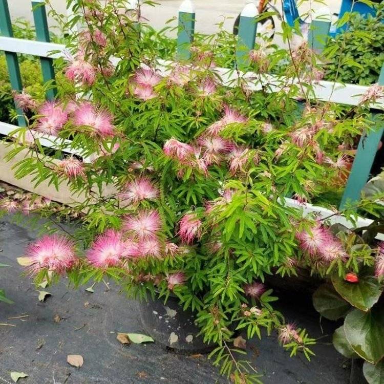 香水合欢球 别名细叶粉扑花 庭园栽培时可多株丛植或列植呈绿篱