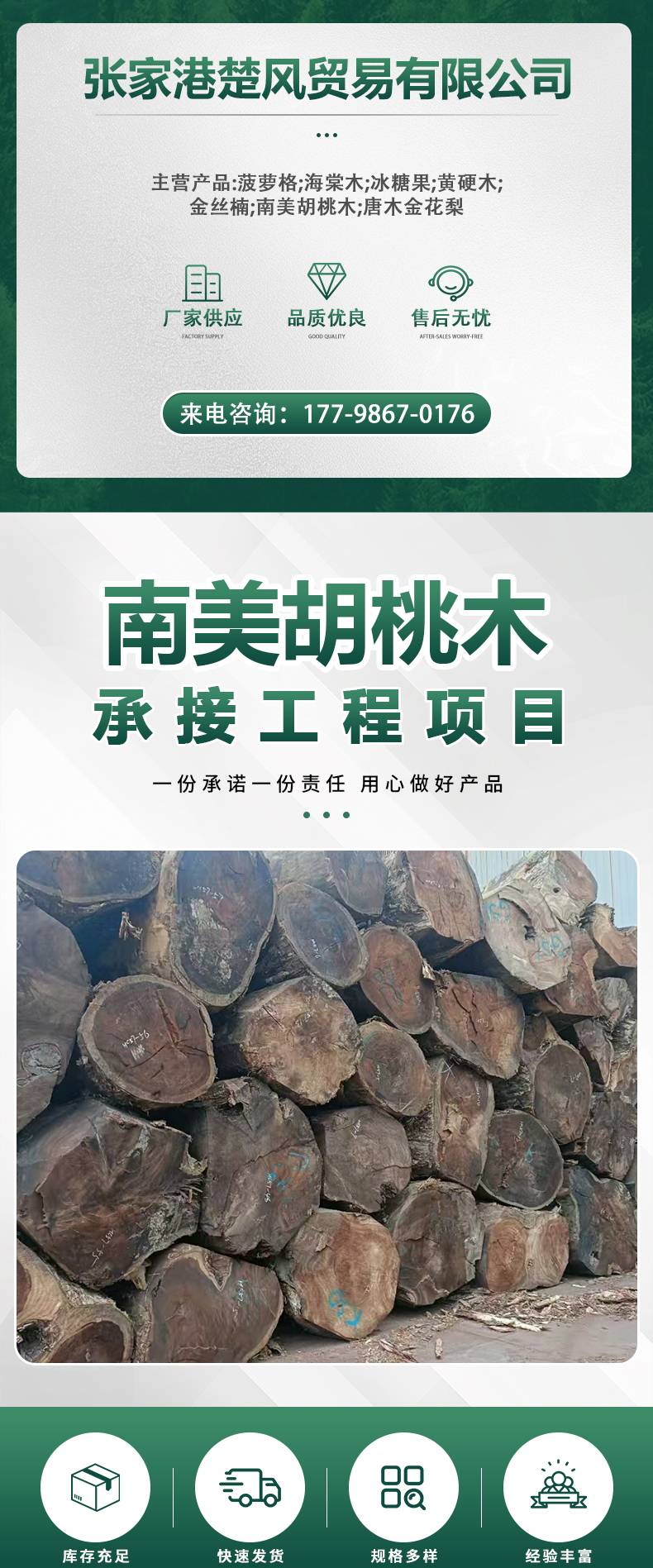 楚风 黑胡桃巴新胡桃木人面子原木非洲厂家供应