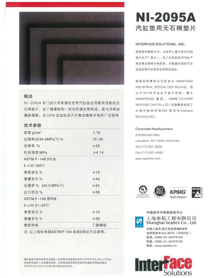 美国因特费斯Interface OEM发动机汽缸垫用无石棉密封垫片NI-2095A