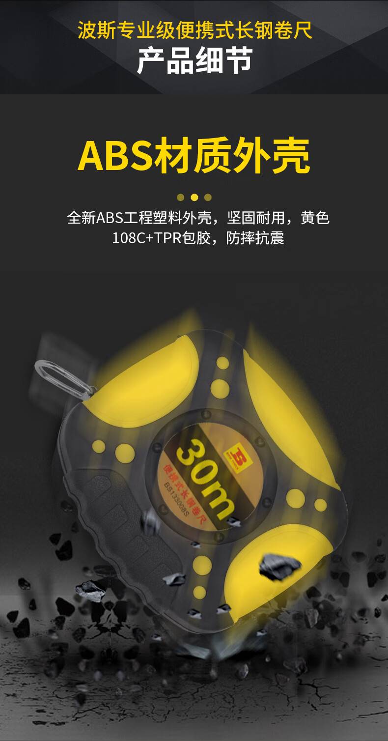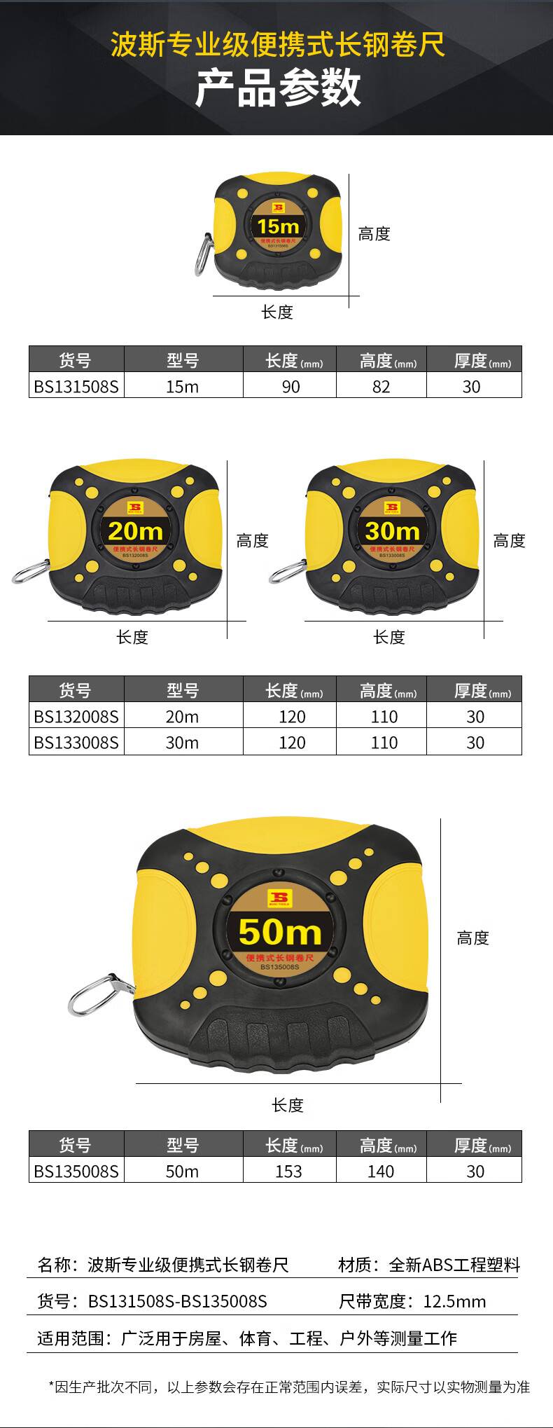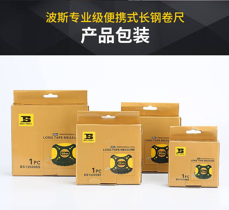 波斯(BOSI)长钢卷尺测量尺 盒尺 木工尺子 BS131508S(15M)