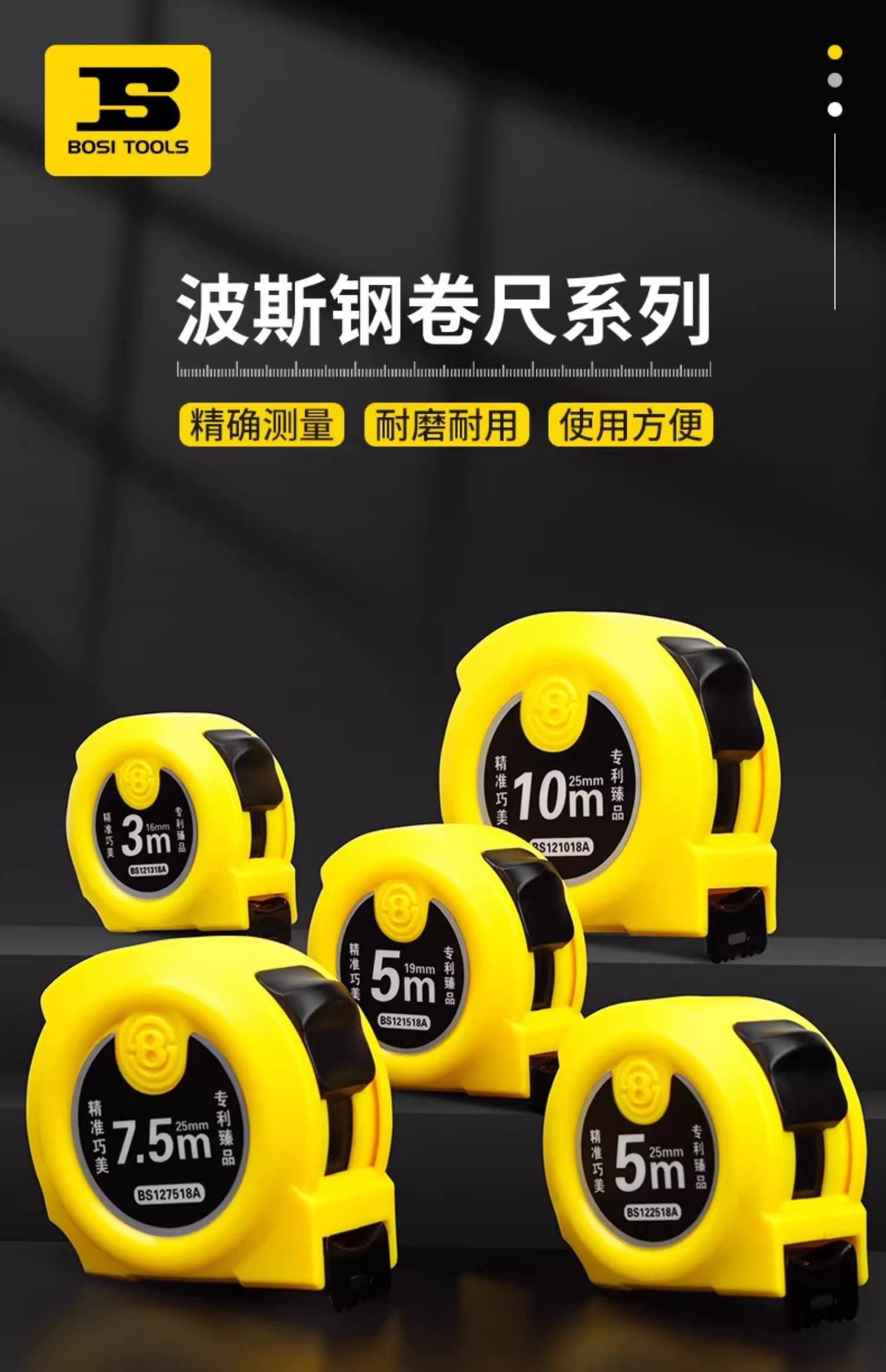 波斯钢卷尺家用5米高精度尺子3米测量工具钢尺7.5米10米盒尺