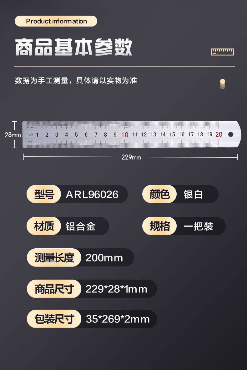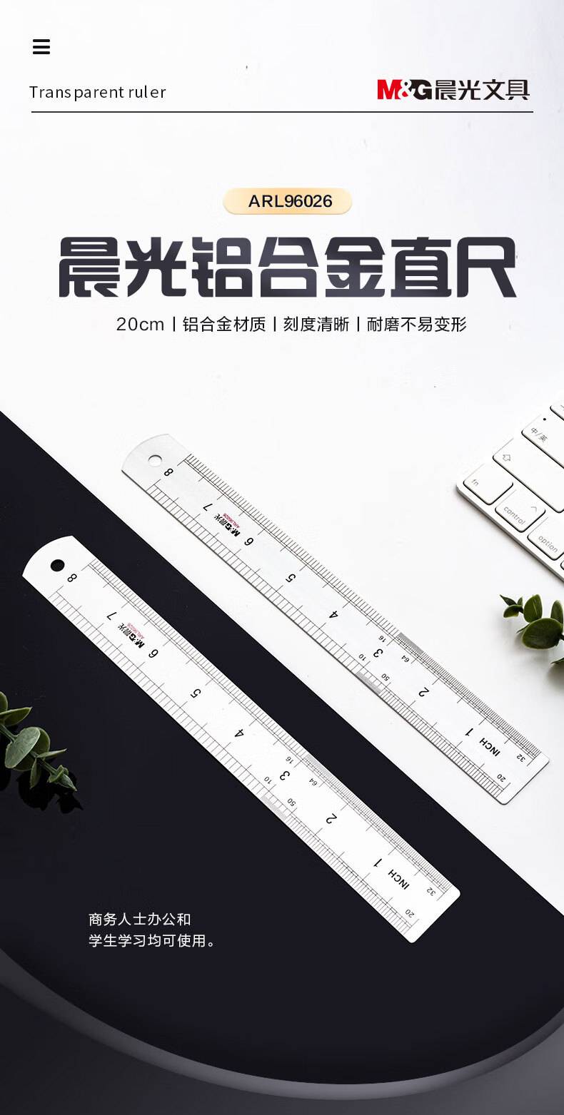 晨光铝合金直尺 20cm测量绘图刻度尺子 双向刻度尺 单把装ARL96026