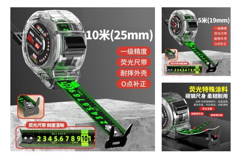 荧光卷尺 5米10m双面刻度米尺 家用盒尺 高精度耐磨加厚加硬尺子