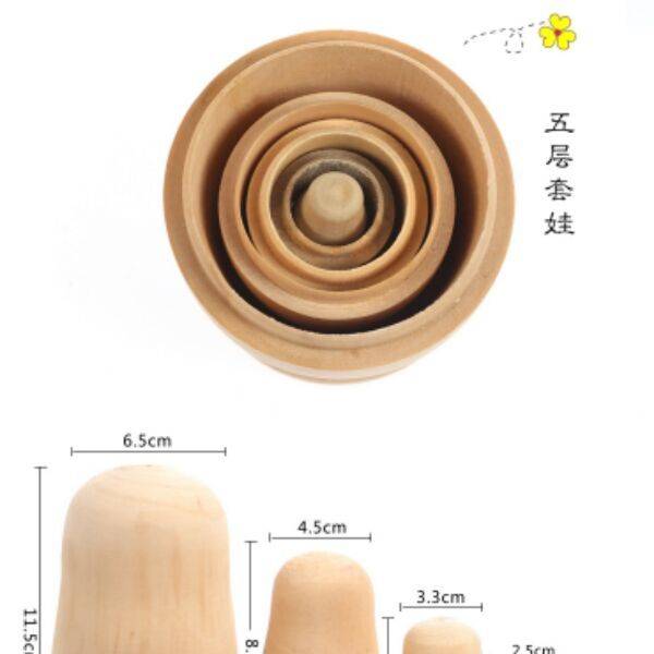 俄罗斯风格白胚套娃 原木色木质手工DIY玩具 一套5层