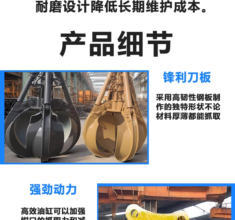 梅花式液压抓斗 结构紧凑耐磨耐用 挖掘机五瓣式抓料机