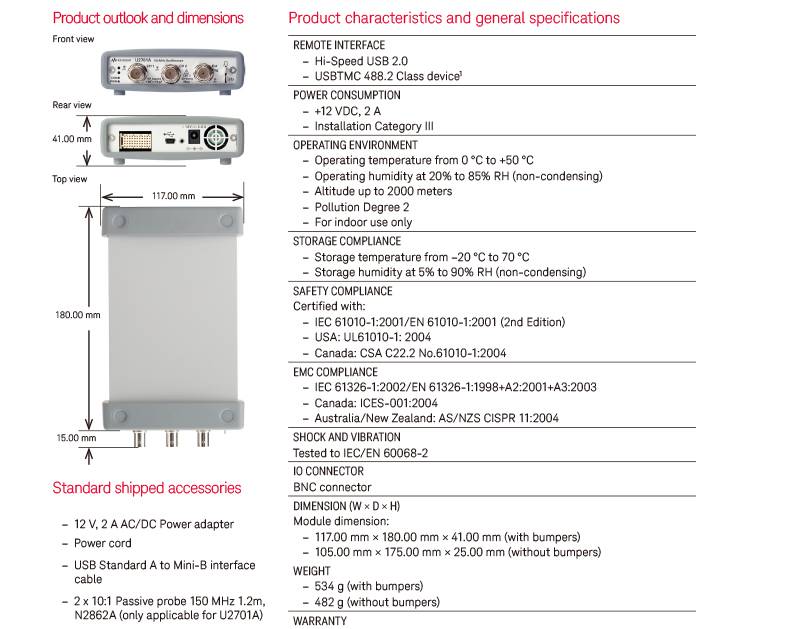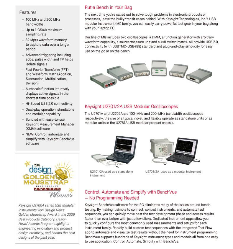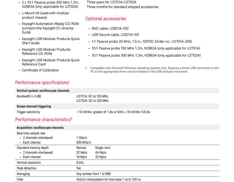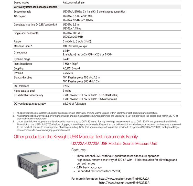 是德科技keysight 系统集成 U2702A USB模块化示波器 长期供应