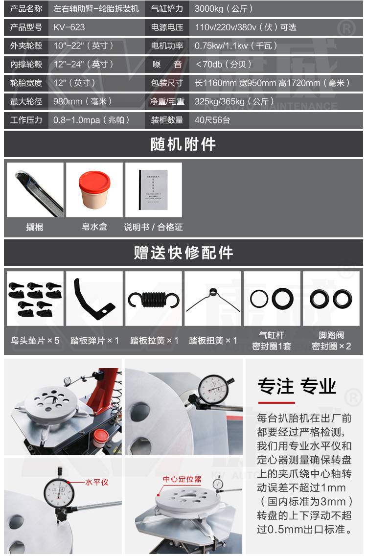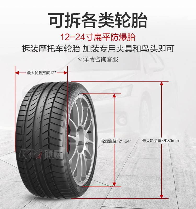 康威汽保扒胎机拆胎机后仰辅助臂拆防爆胎全自动轮胎拆装机KV623