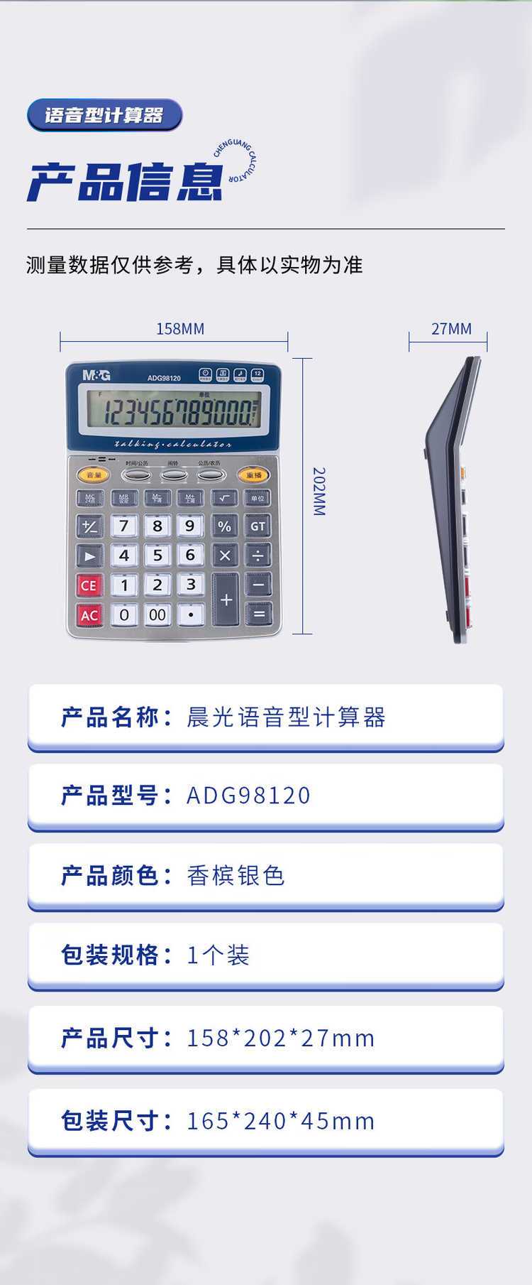 晨光 语音计算器 ADG98120A 物否企业伴手礼品 MY-SHCG-L5-45