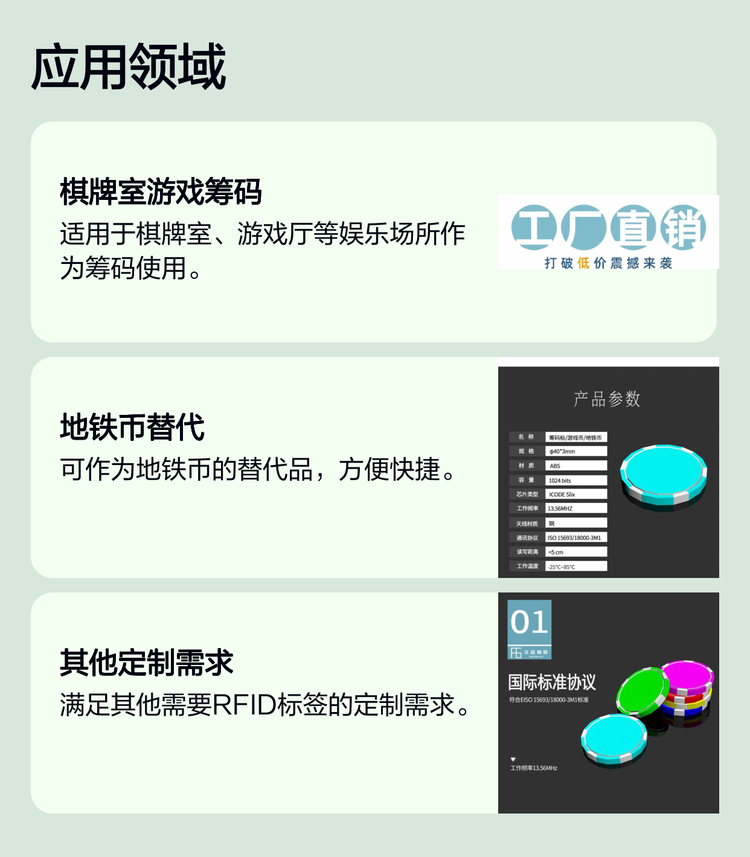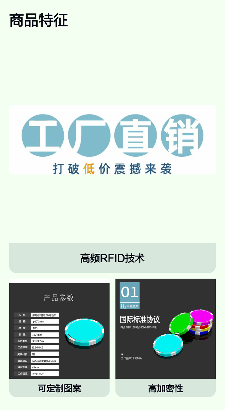 厂家供应高频RFID筹码标签酒店棋牌室游戏筹码