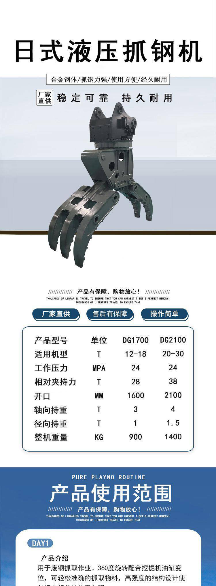 日式液压抓钢机挖掘机前端属具高强度装卸机钢厂废料废铁抓料机