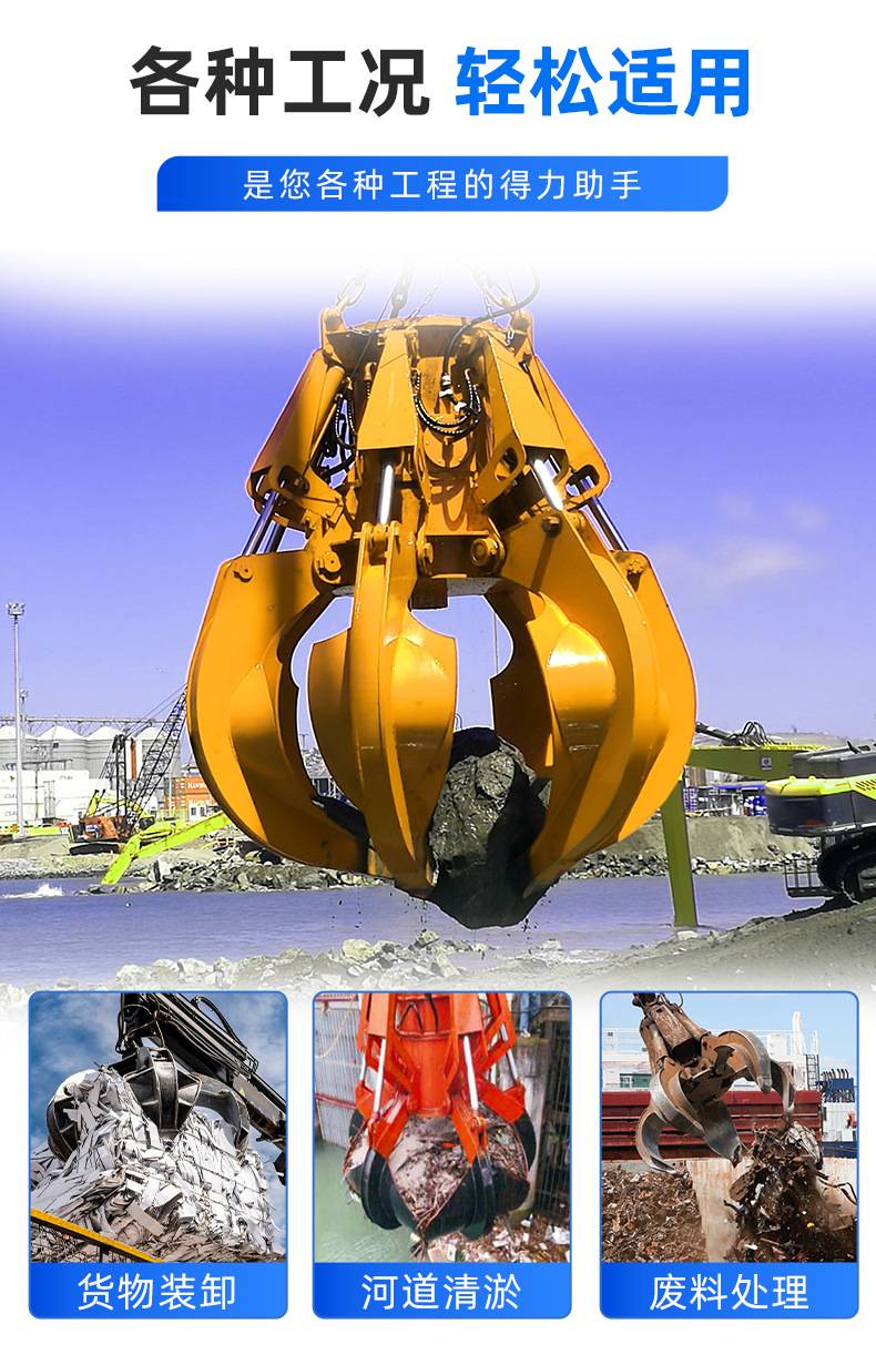 360度旋转液压莲花抓 可更换辅具3吨抓钢机 挖掘机抓钢器
