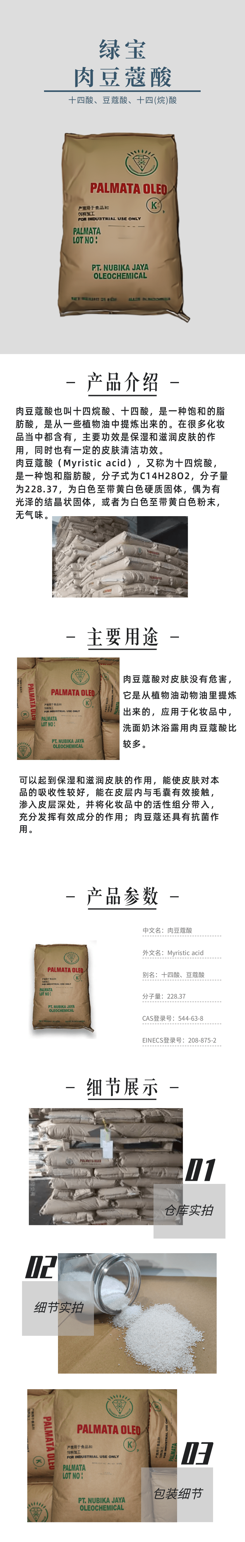 绿宝肉豆蔻酸皂基洗面奶原料 25KG袋装十四酸含量99%