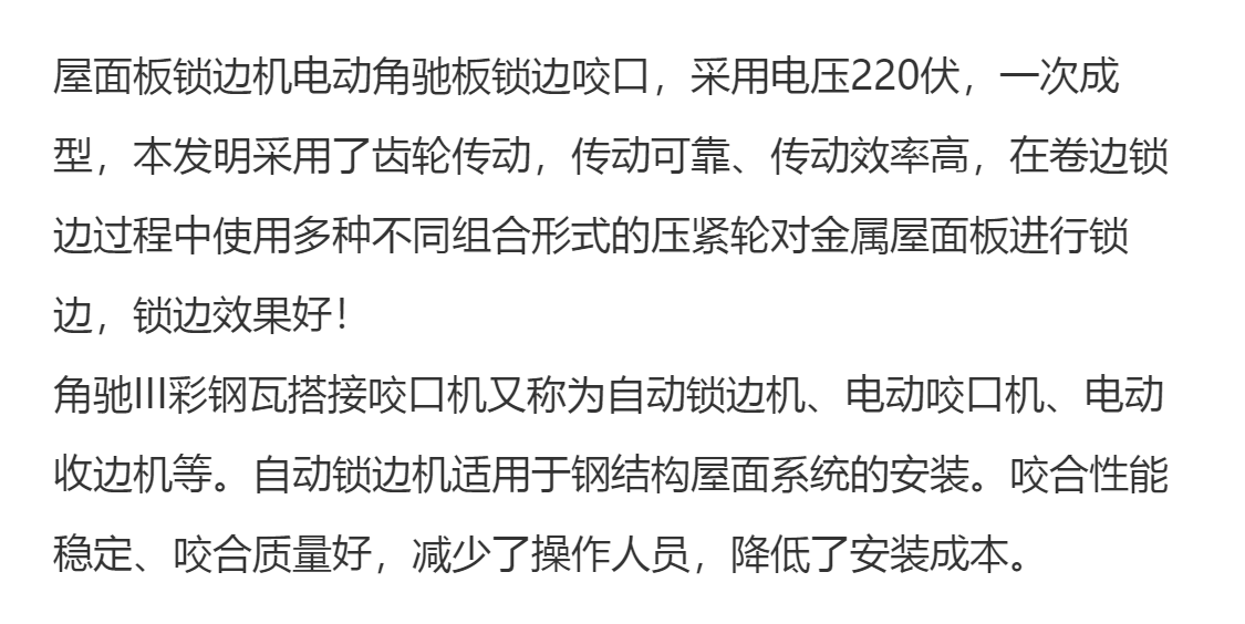 电动咬口机 360度锁边机 钢结构顶板包边机械 可按需定制