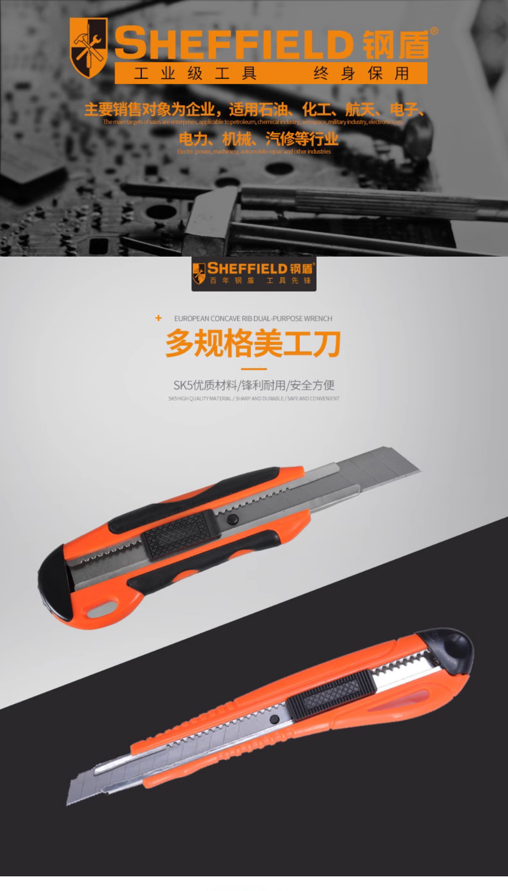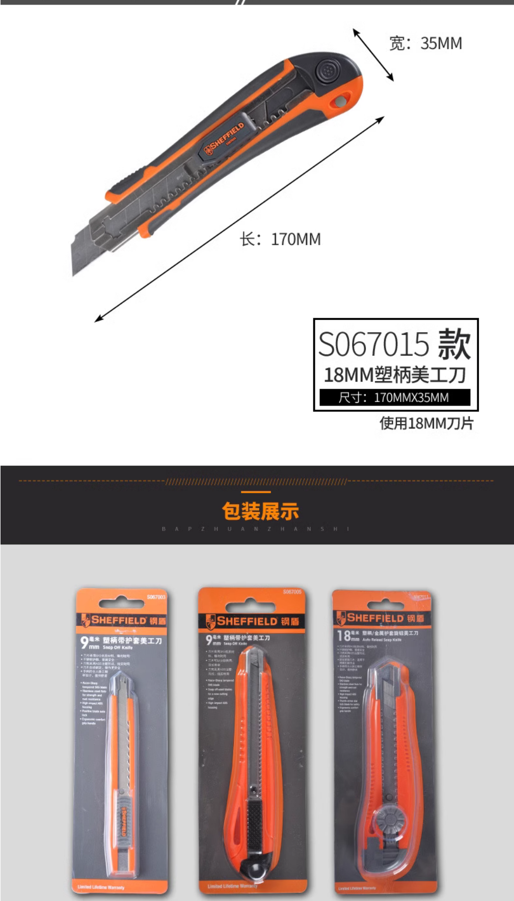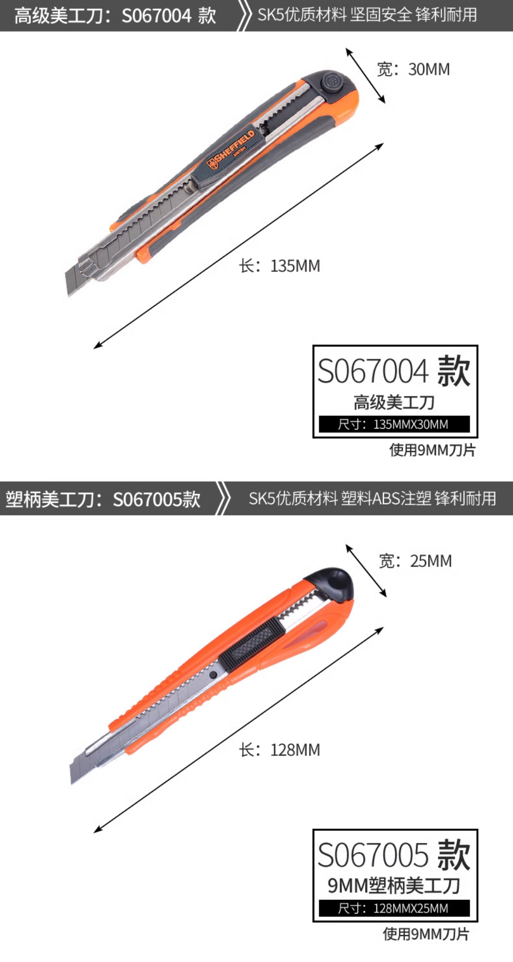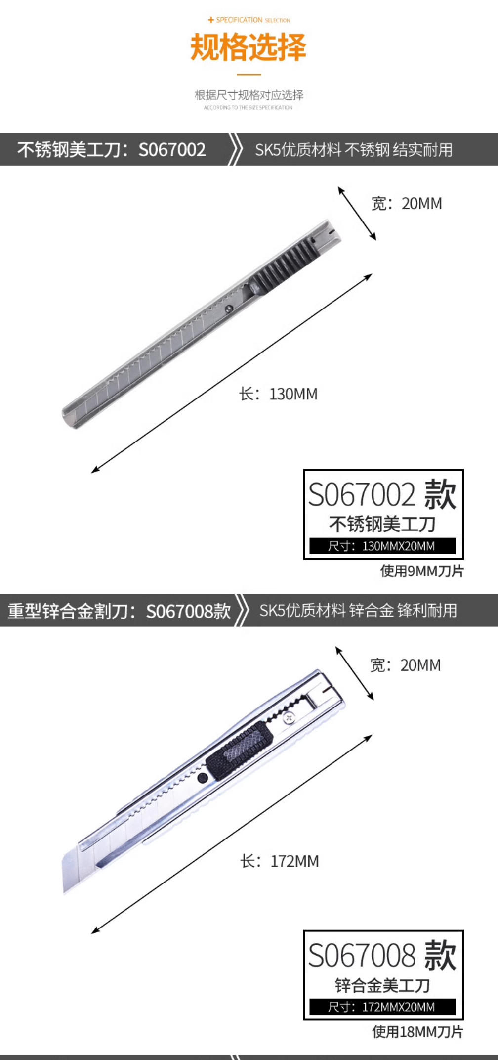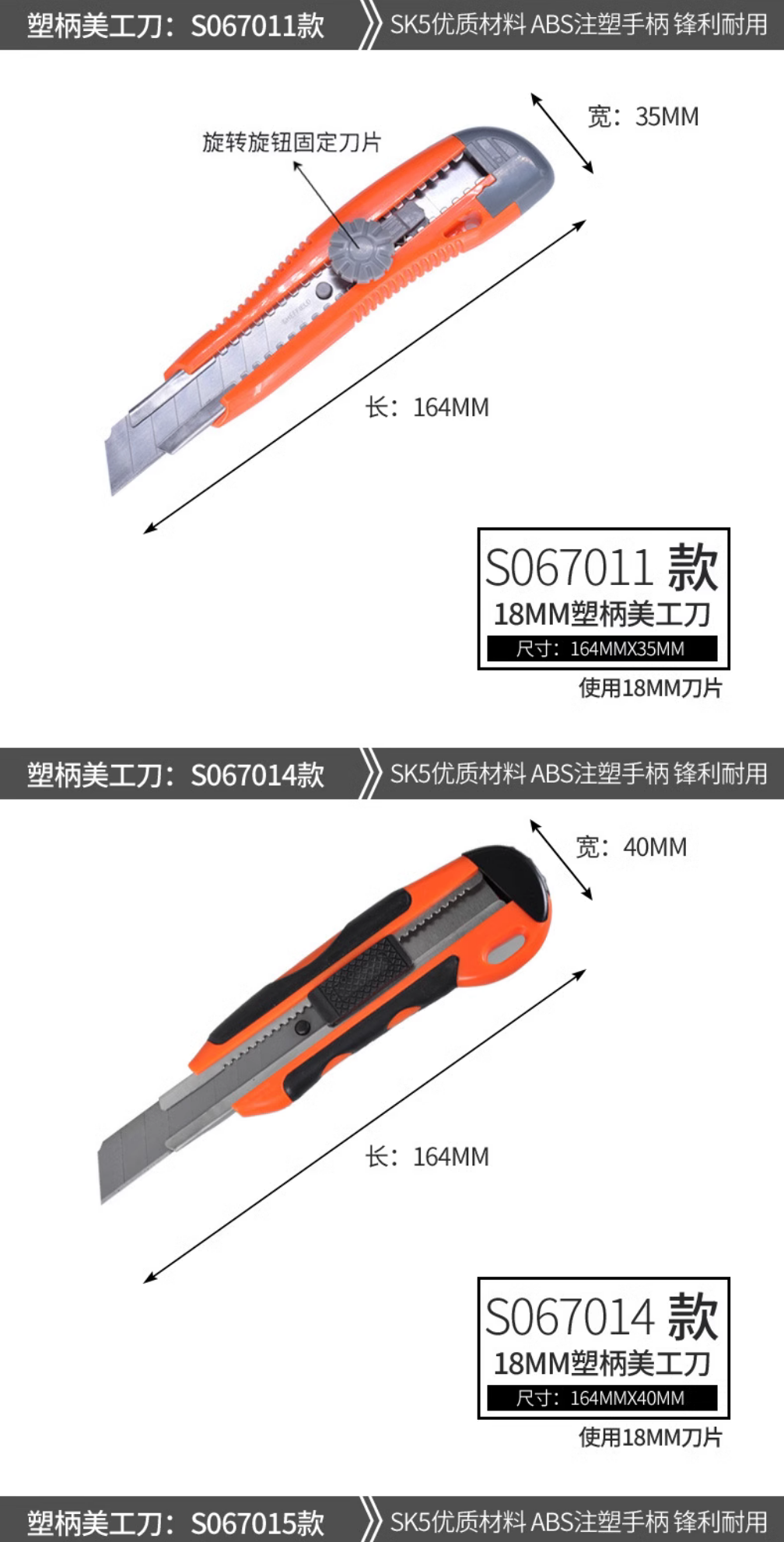 钢盾塑柄美工刀 家用壁纸刀 多功能开箱刀 裁纸刀 S067005