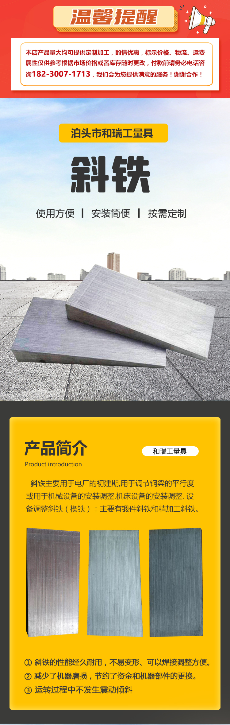 钢制斜垫铁 减少机器磨损 楔铁斜铁 快捷 ‌适用范围广 和瑞