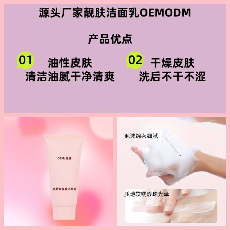化妆品厂家跨境电商OEM富勒烯靓肤洁面乳温和深层清洁泡沫绵密