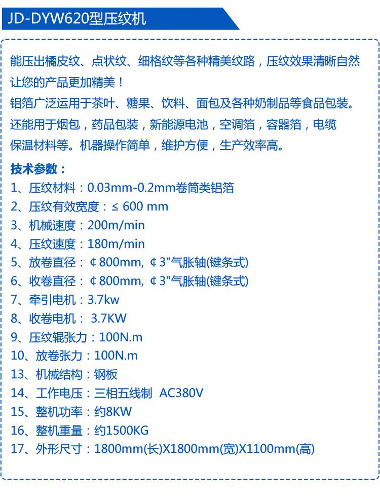 嘉东机械定制JD-DYW620铝箔压纹机 全自动酸奶盖封品膜压纹设备