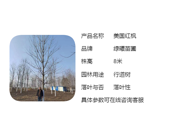绿曦苗圃 自家苗圃 美国红枫秋火焰 红点 银红槭6 8 10 12 15 18 公分