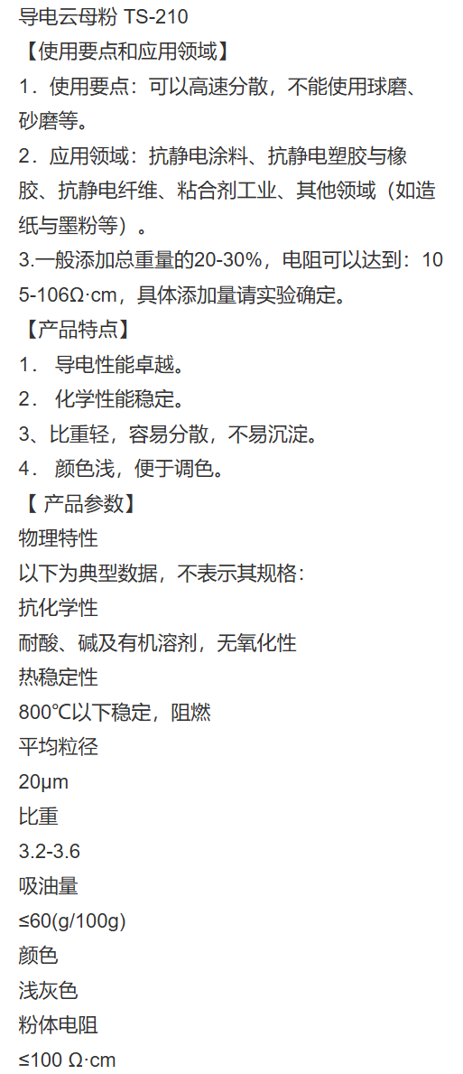 供应导电云母粉 TS-210 可用于抗静电涂料 含量≥ 90(%)