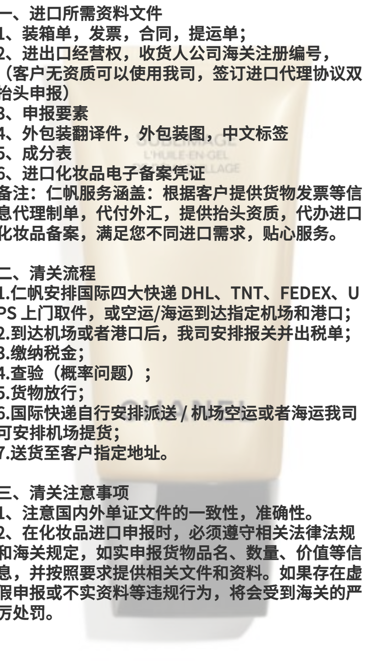 进口化妆品洁面膏 海运空运 国际物流运输清关报关一站式代理服务