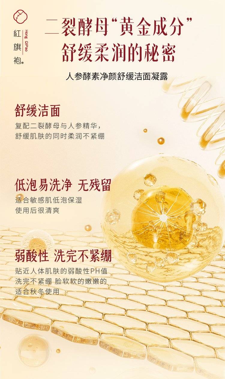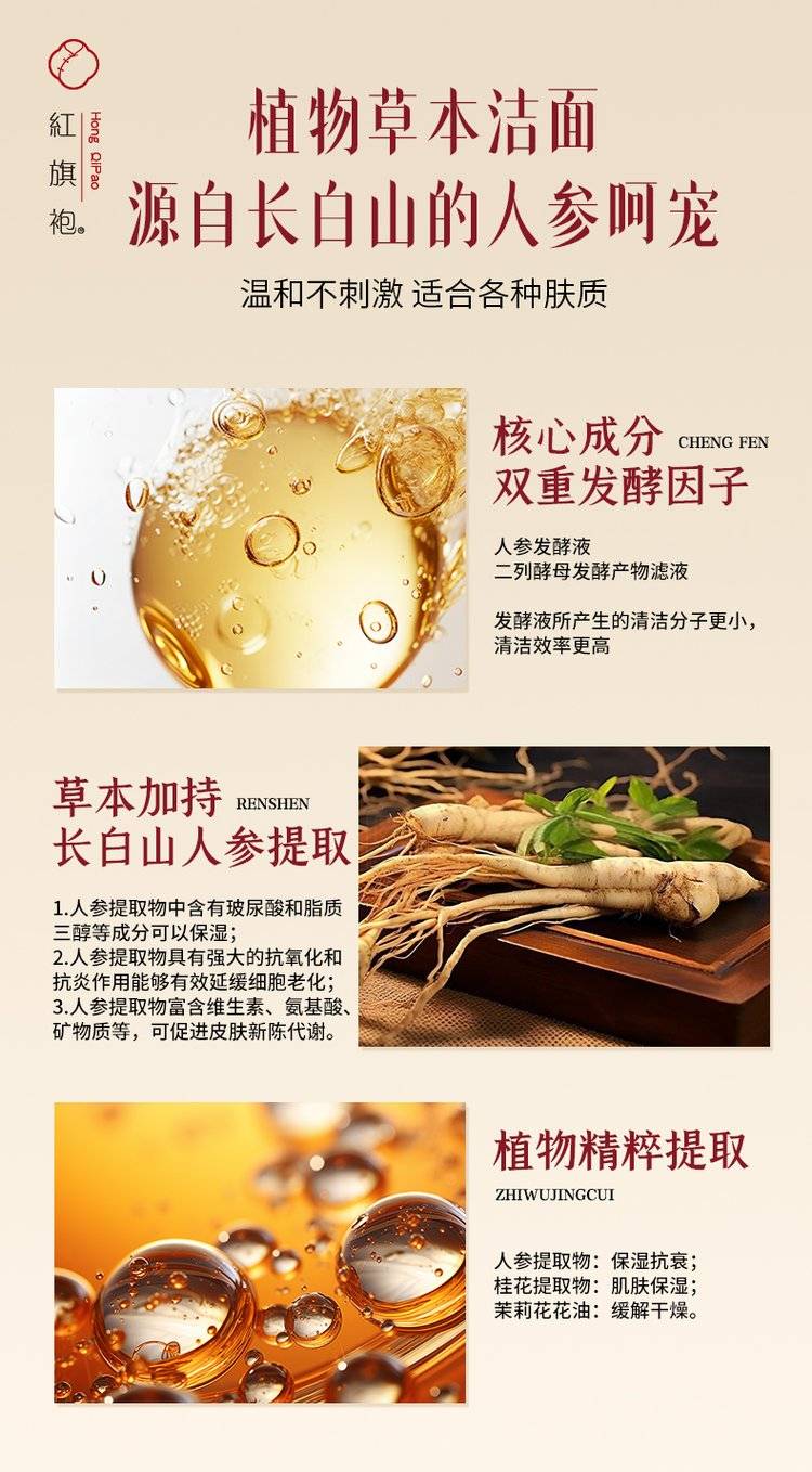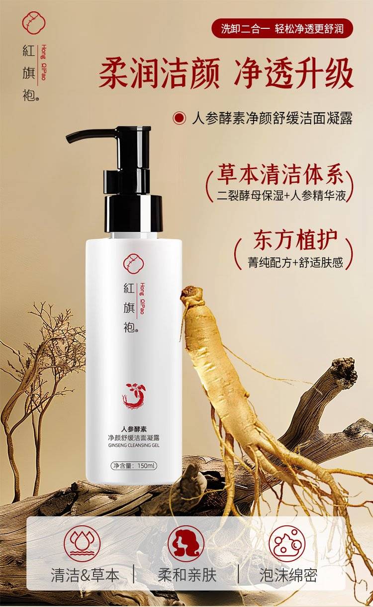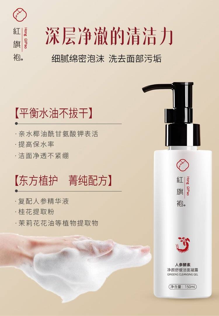 红旗袍人参酵素净颜舒缓洁面凝露 洁面乳 洁面膏 洗面奶现货OEM贴牌