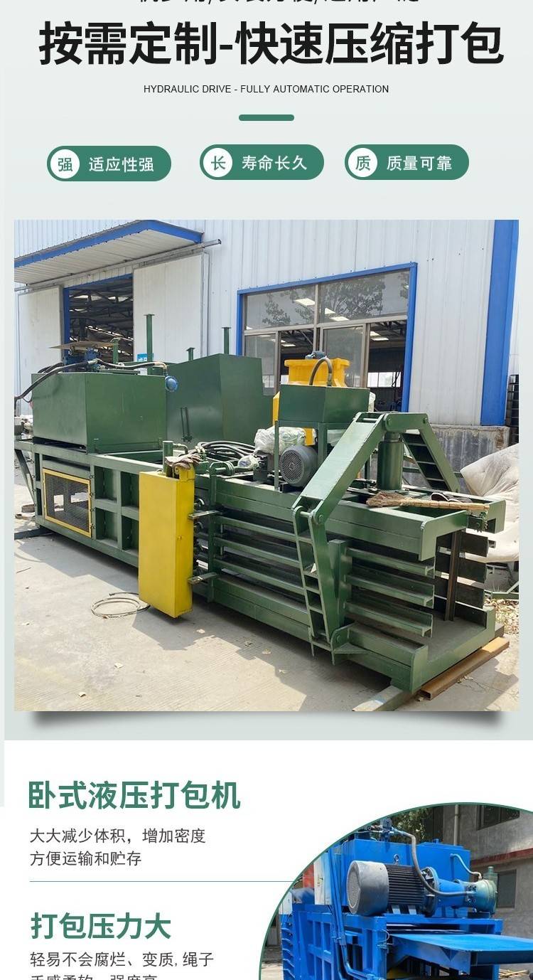 黄纸板旧书本全钢板卧式打包机 编织袋压包机 全自动提升门定金