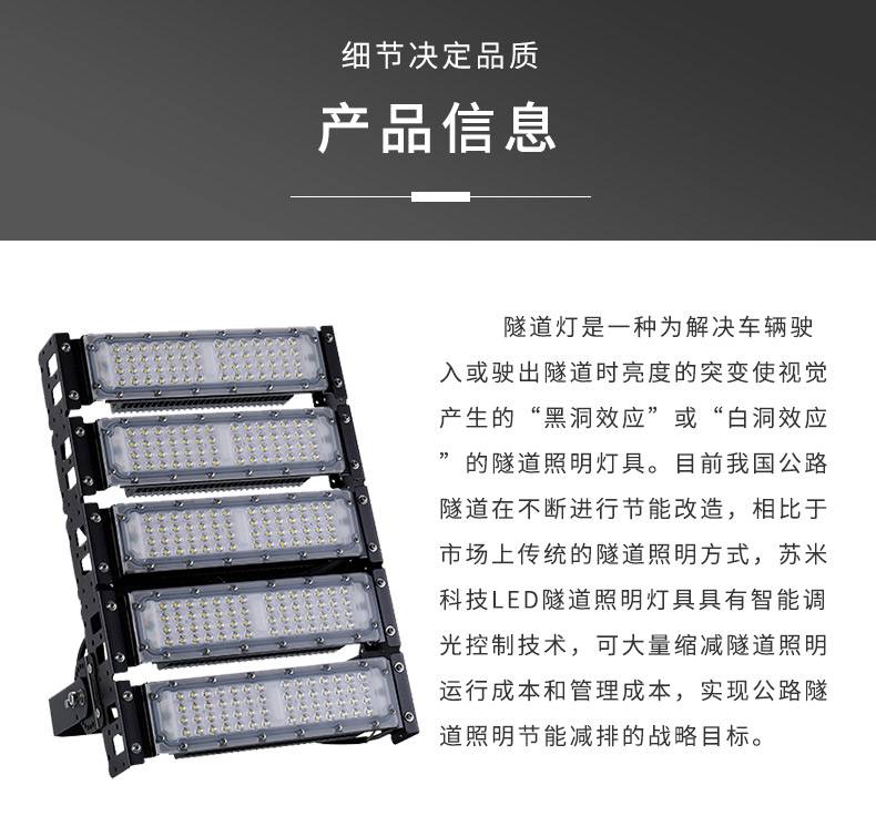 苏米科技高亮LED隧道照明灯具 220V侧壁安装 智能可调光