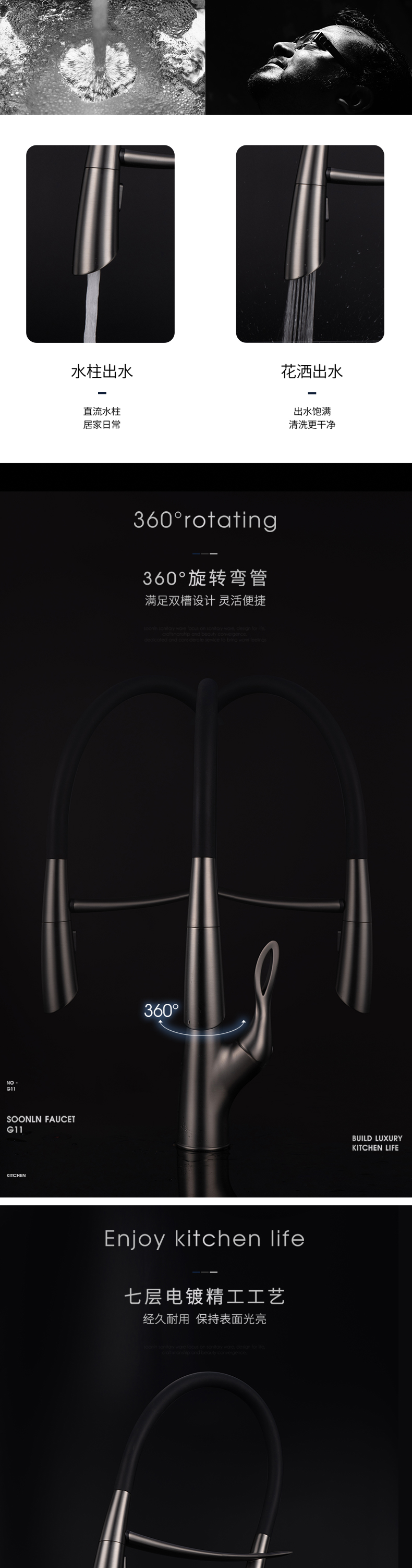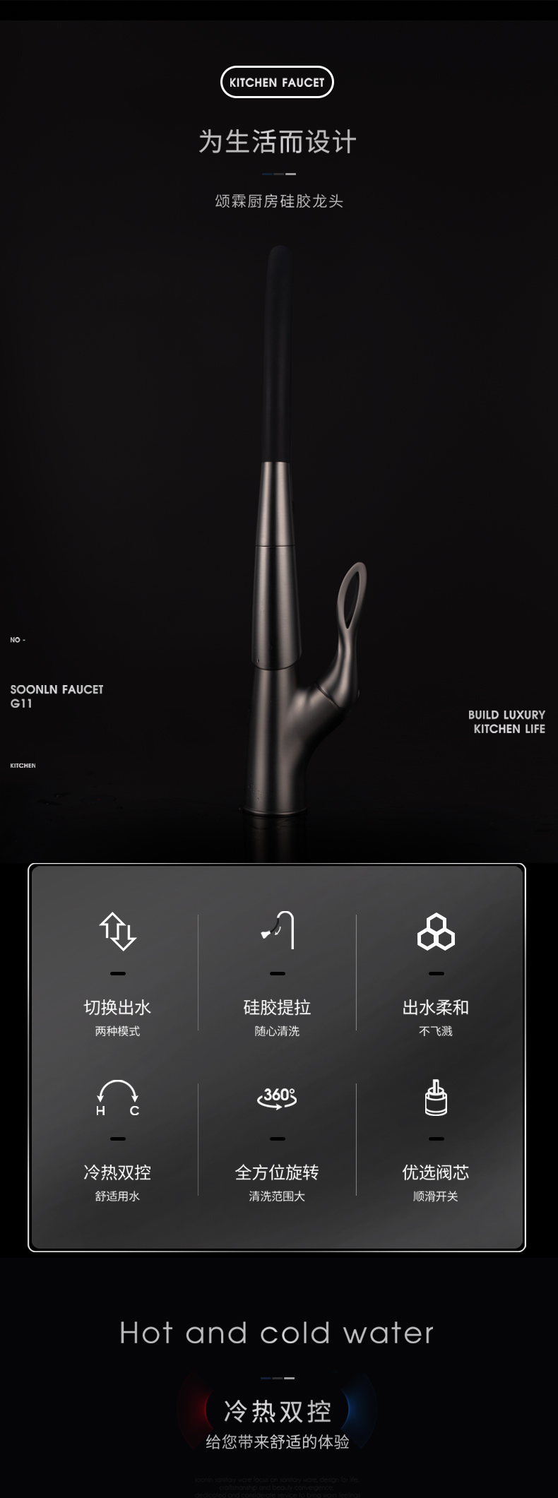 FNN1批发颂霖厨房硅胶磁吸水龙头洗菜盆台上盆拉伸触碰感应厨卫冷