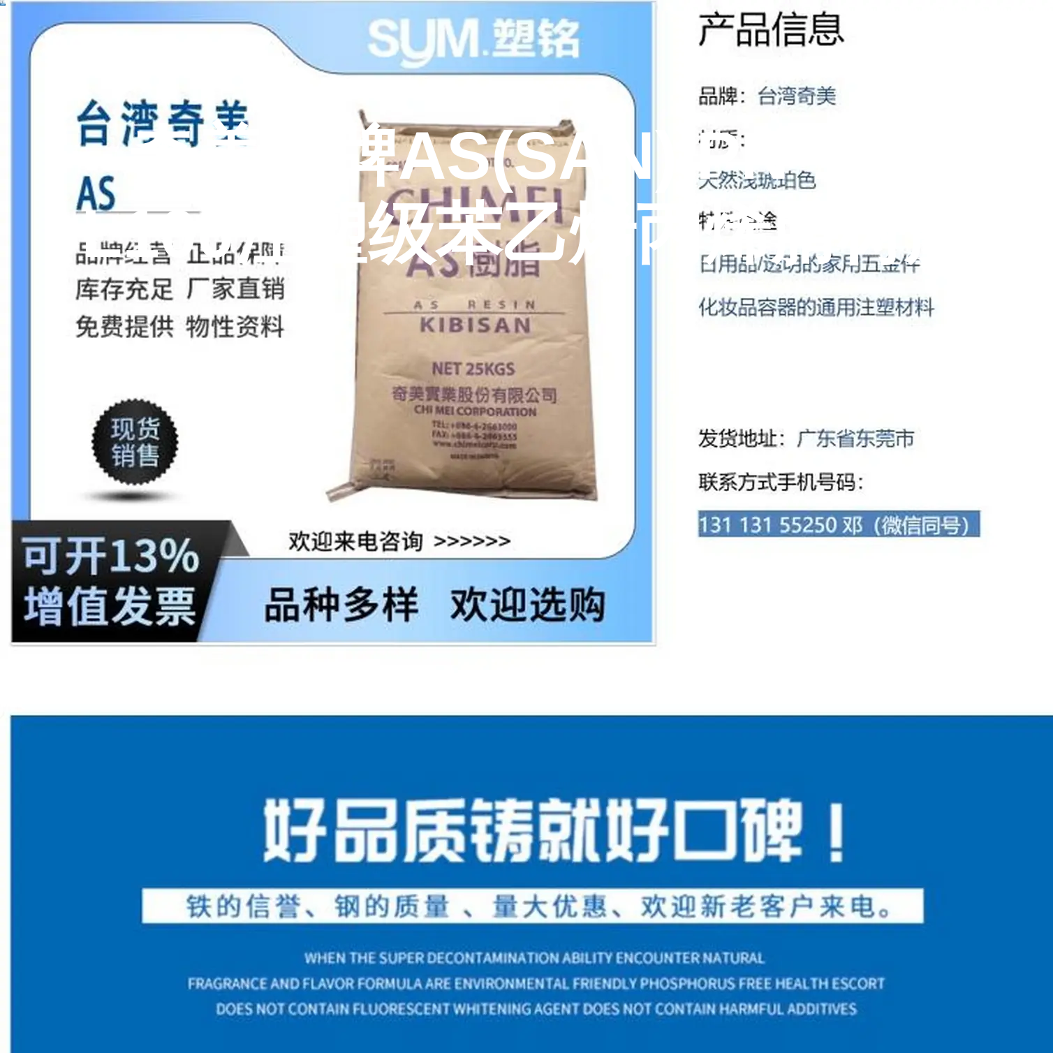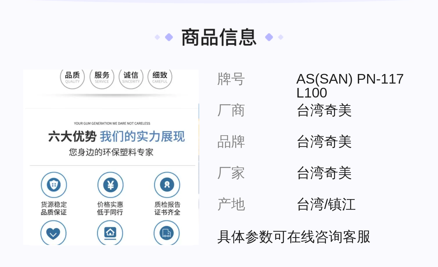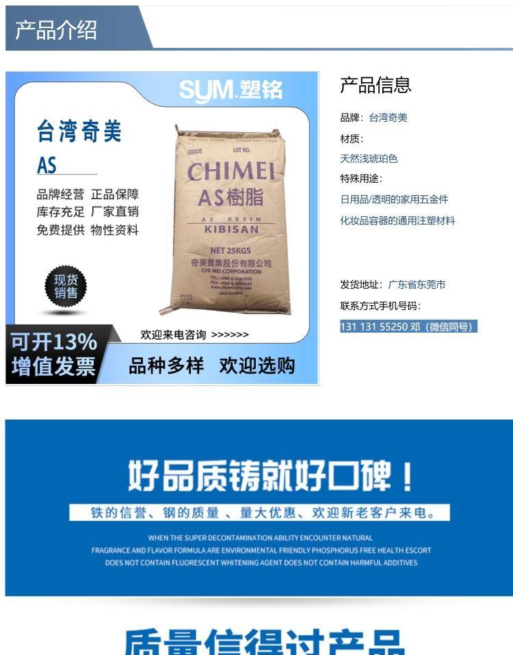 奇美品牌AS(SAN) PN-117 L100注塑级苯乙烯丙烯腈树脂