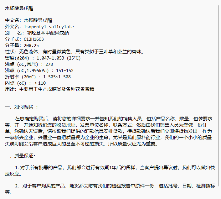 2222用于生产戊腈类及各种花香香精 水杨酸异戊酯 兴恒业科技 无色液体