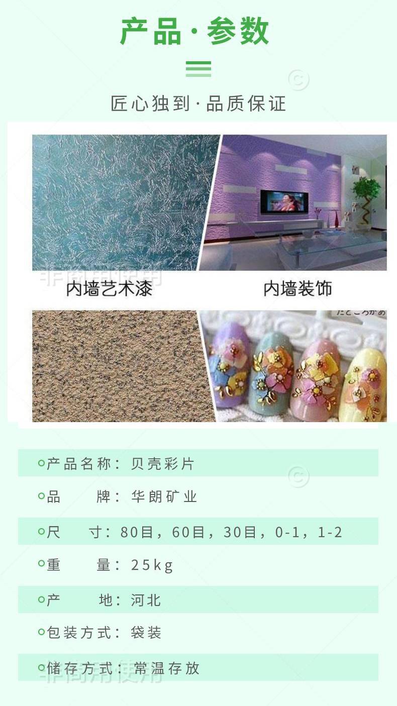 供应贝壳彩片 华朗矿业 艺术涂料复合多彩岩片 内墙装饰美甲亮片