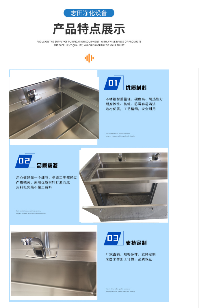 工厂定制 洁净室 食品厂 304 不锈钢 感应水龙头 双槽消毒池