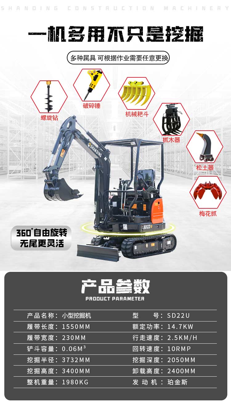工程22型小挖机 带遮阳棚小型挖掘机 全地形适用可侧摆钩机